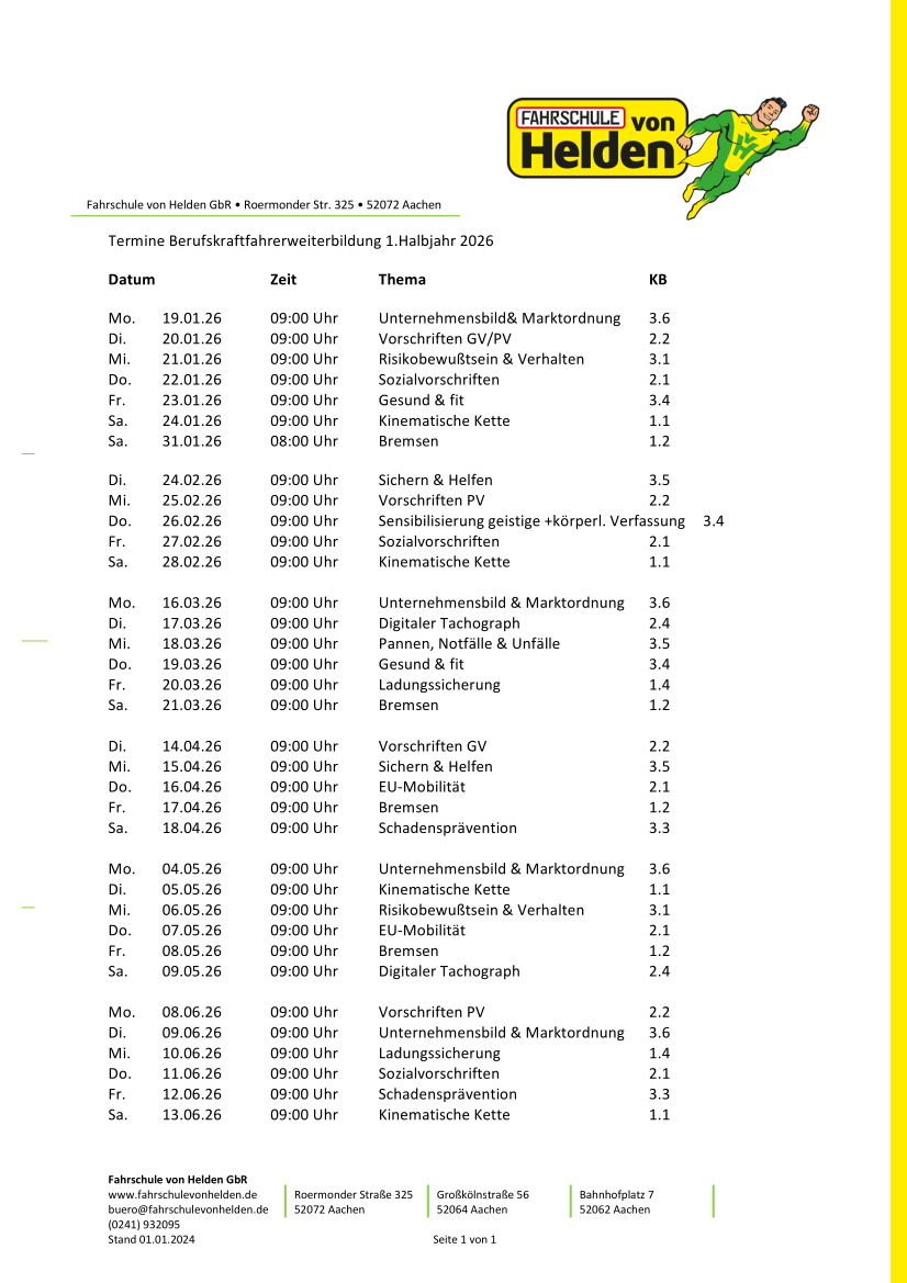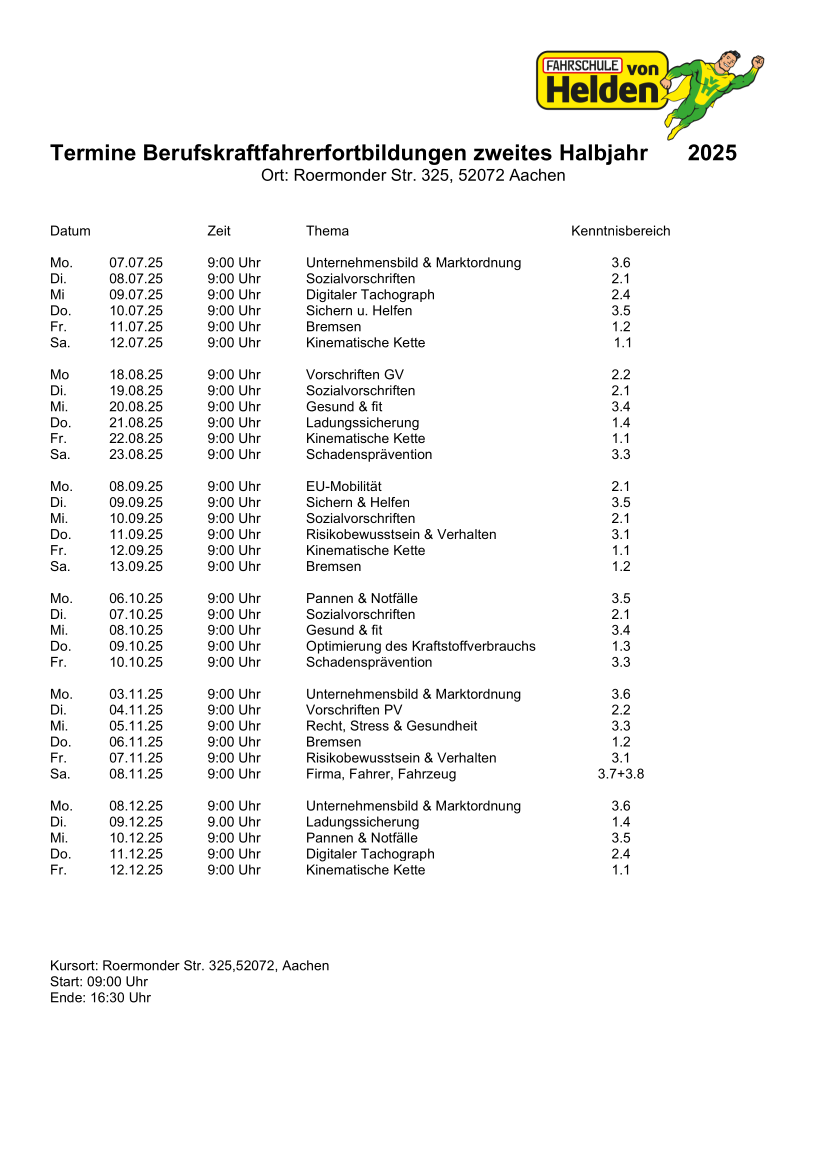 Die Weiterbildung findet in den Räumlichkeiten der Fahrschule von Helden (Roermonder Straße 325) statt.